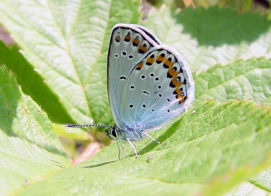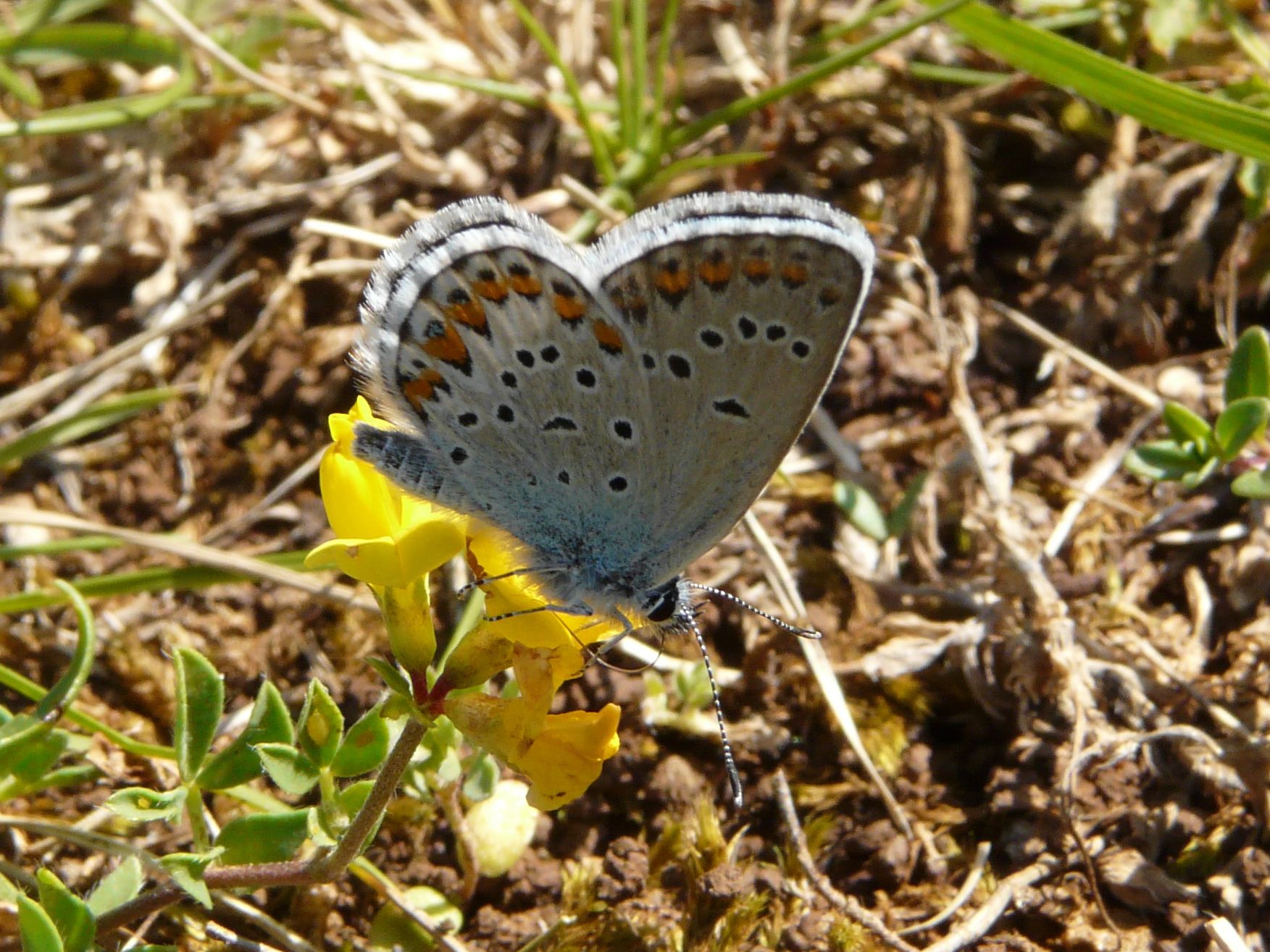 Les mâles d’Azuré du Genêt présentent un dessus bleu vif ourlé d’une fine bordure marginale noire et de franges blanches très marquées. Les femelles, brunes, portent un lavis azuré plus ou moins envahissant, mais surtout de magnifiques lunules submarginales orangées étirées vers la base aux ailes postérieures. Au revers, la bande submarginale est large, orange vif, surmontée d’une série de chevrons noirs nettement sagittés. Il existe un grand risque de confusion des mâles avec ceux de Plebejus argyrognomon. Sur le terrain, l’identification de certains individus mâles d’habitus intermédiaire entre les deux espèces est illusoire. La séparation se révèle encore plus hasardeuse sur certaines photographies. Se reporter à la notice de Plebejus argus pour les critères de différenciation relatifs à l’habitus.