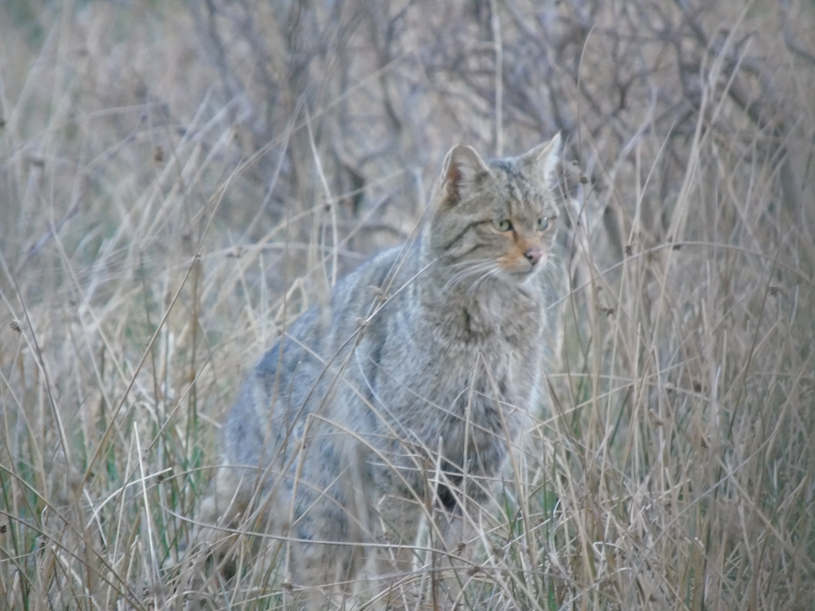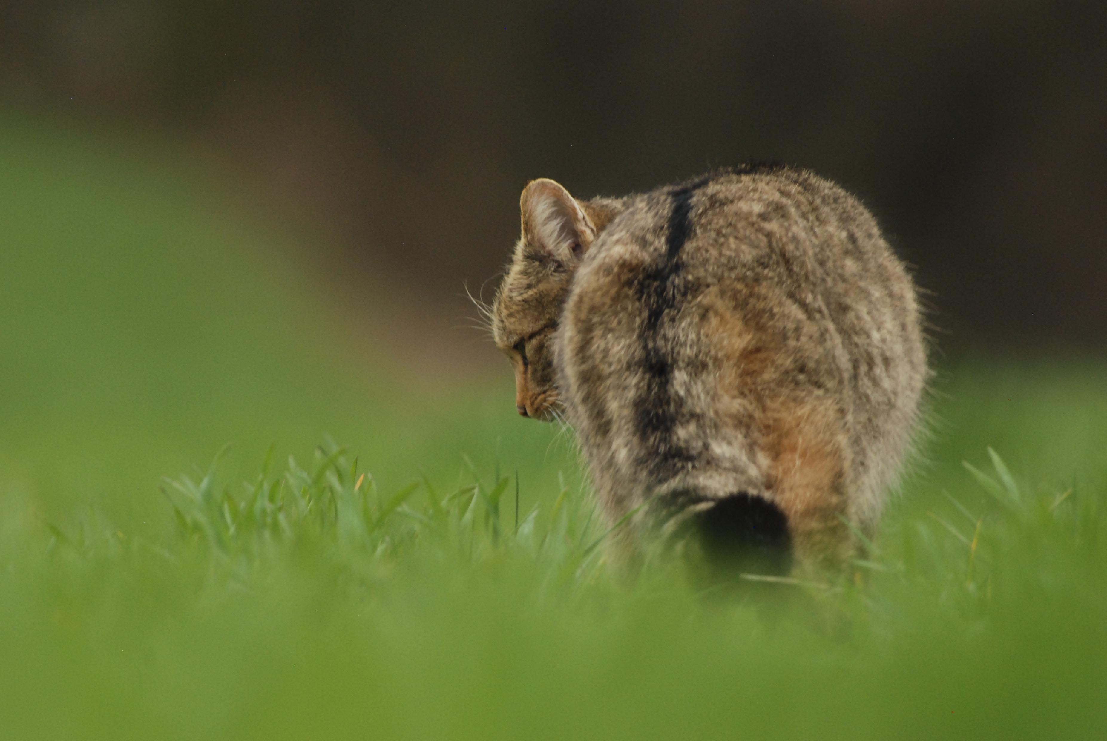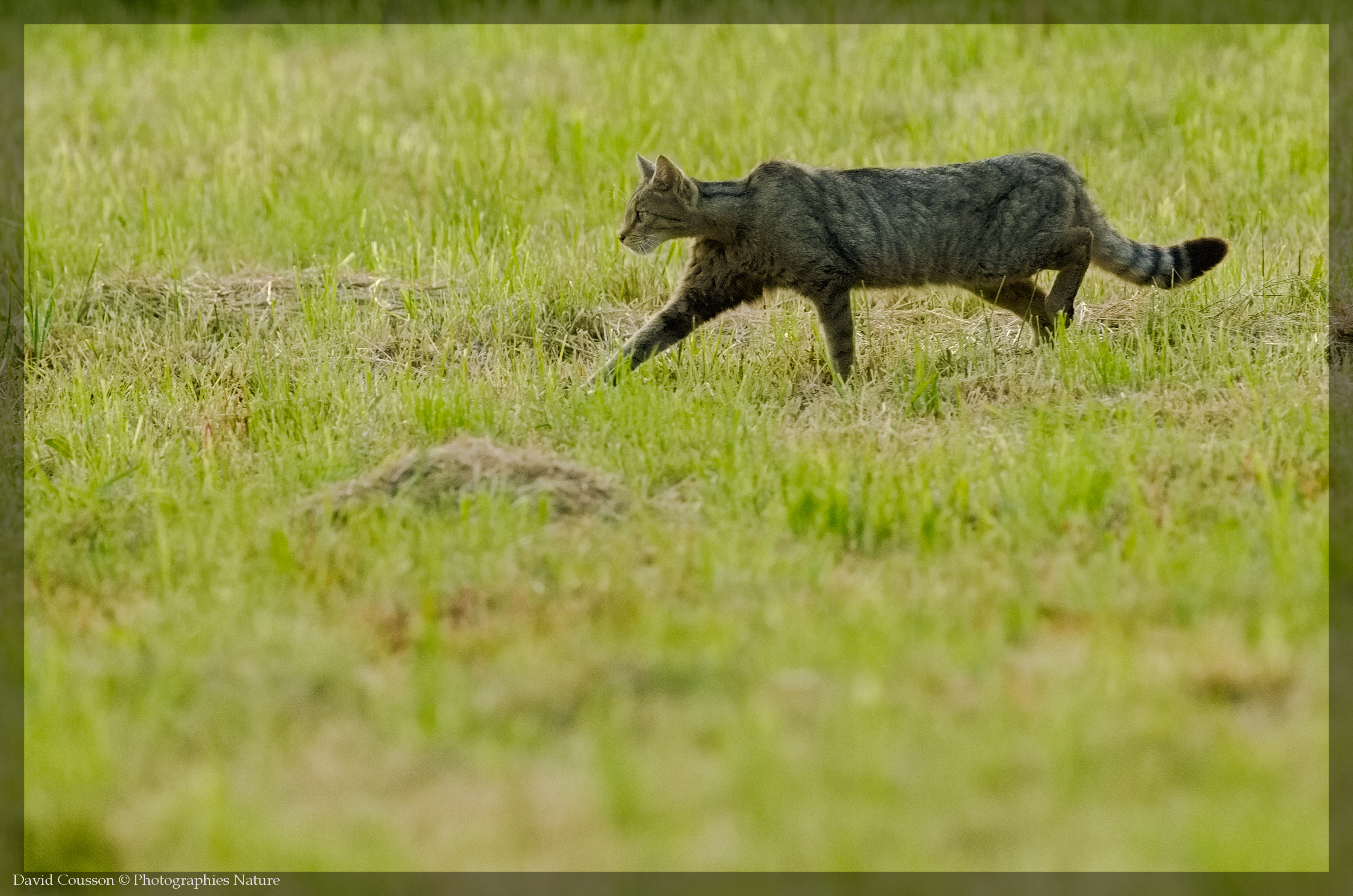 Le pelage du Chat sauvage, ou Chat forestier, est gris fauve avec des raies dorsales noirâtres moins visibles que le chat tigré domestique. Les félidés sont des mammifères carnivores. Ils marchent en appuyant sur leurs doigts (sans poser la plante du pied au sol), on dit qu’ils sont digitigrades. Leurs griffes sont rétractiles. La queue épaisse est caractéristique : longue de la moitié de la longueur du corps, elle est marquée de sept à huit anneaux noirs dont le dernier enveloppe le bout de la queue. Le Chat sauvage a le nez rose et de longues vibrisses blanches (moustaches). Le mâle est plus gros que la femelle.