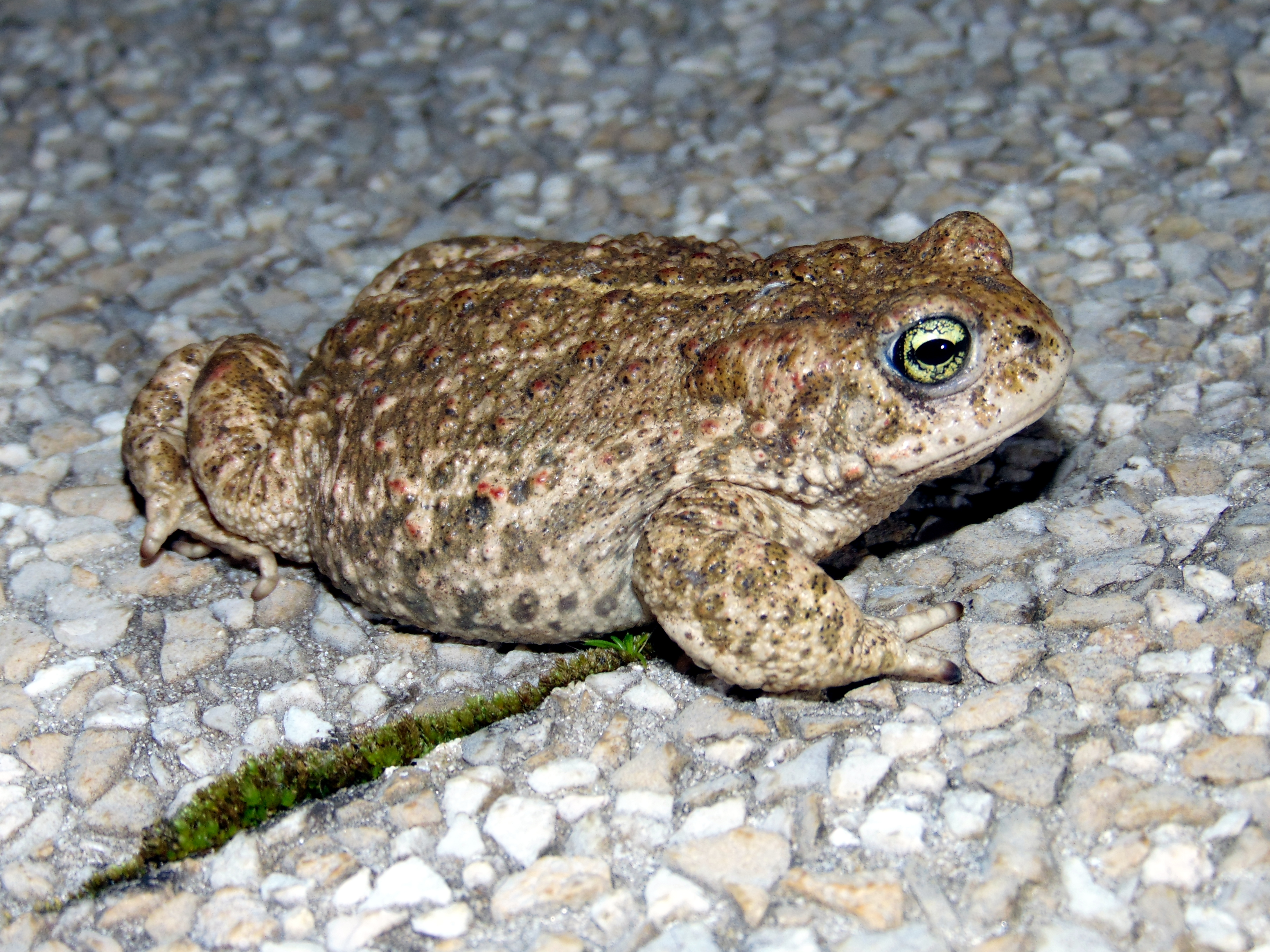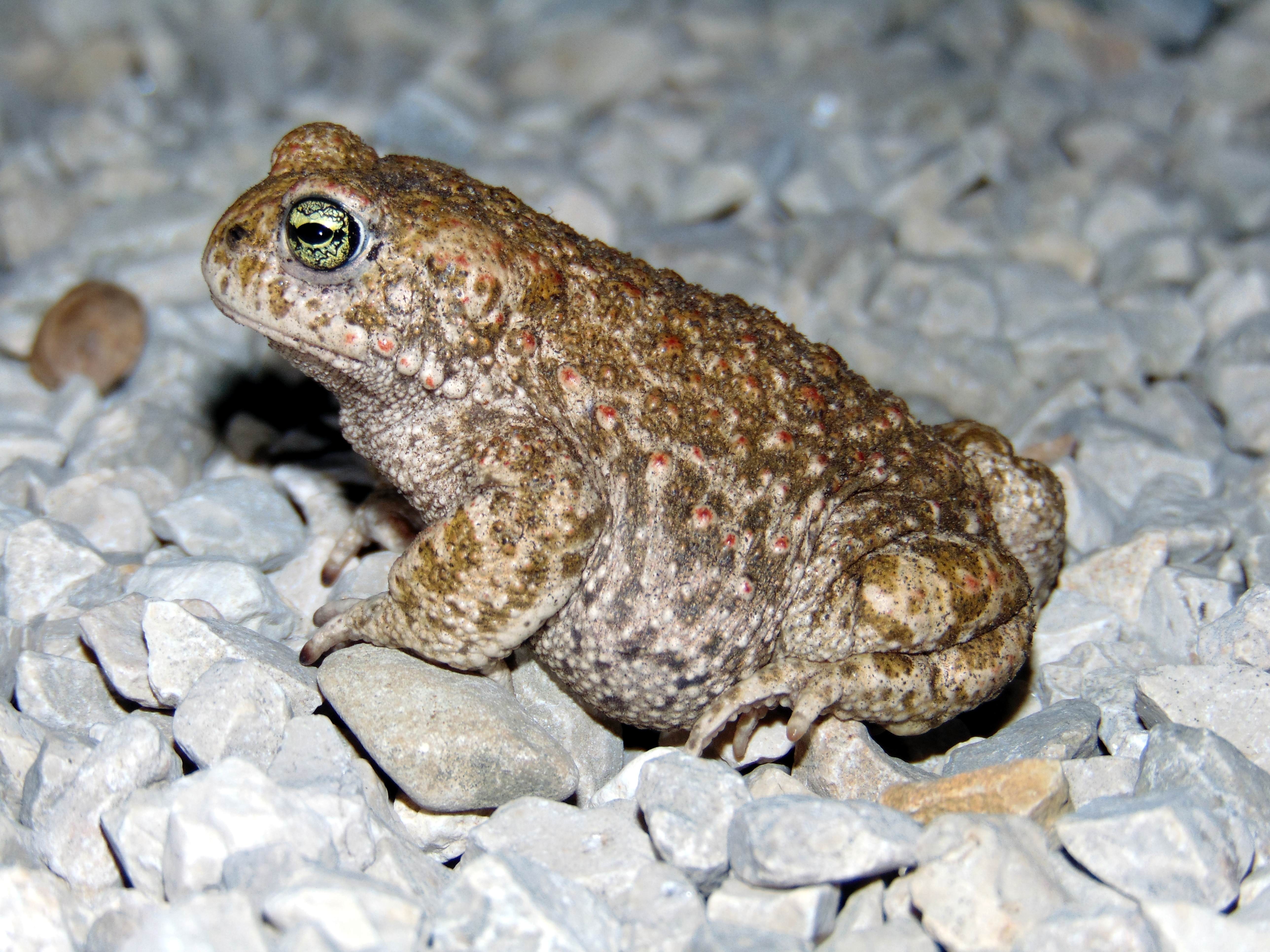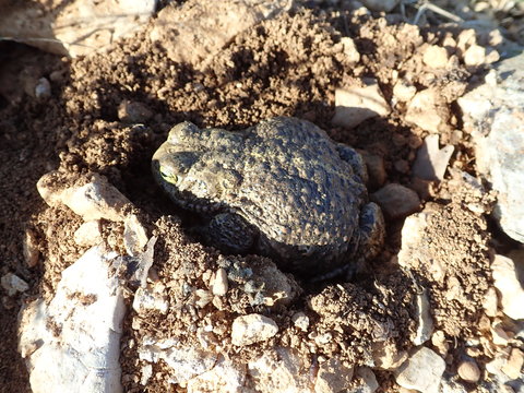 Le Crapaud calamite est un nomade ! On peut l’observer une ou quelques saisons à un endroit puis plus rien pendant des années… Avant que des individus ne se réinstallent peut-être à nouveau pour quelque temps. Espèce pionnière, il se déplace au gré de l’évolution des milieux aquatiques dans lesquels il pond. Lorsque l’instabilité de ses milieux est justement stable, de par l’action du bétail, des crues régulières, d’engins d’extraction de matériaux, les populations vont s’installer durablement. Si les facteurs perturbateurs qui lui sont indispensables disparaissent ou perdent de leur efficacité, il met les voiles ! Une étude a montré que, si la majorité des individus restent dans un rayon de quelques kilomètres autour de leurs sites principaux de ponte, certains peuvent migrer à plus de 10 kilomètres ! Il trouve des milieux de prédilection dans les carrières en exploitation, dans des prairies ou autres zones inondables des vallées, les queues d’étangs, ou dans des vieilles mares en voie d’atterrissement, dans les systèmes bocagers, les cultures ou parfois dans des zones périurbaines. Il sort surtout de nuit, par temps doux et humide. Dans tous les cas, les zones de ponte doivent être peu profondes et bien ensoleillées, comme des flaques et ornières. Fouisseurs, les adultes creusent des terriers dans les sols meubles, sableux, terreux ou argileux.