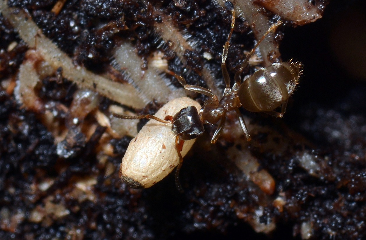 De manière générale chez les fourmis, les reines pondent des ouvrières, asexuées et dévouées à la maintenance de la colonie, des femelles futures reines et des mâles. Les mâles ne sont présents dans la colonie qu'au moment de la reproduction. Les femelles fécondées deviennent les reines et partent fonder une nouvelle colonie, ailleurs, si elles ne sont pas acceptées par leur ancienne. Chez les fourmis, la métamorphose est complète, les larves sont très différentes des adultes et la métamorphose se fait au stade nymphal.