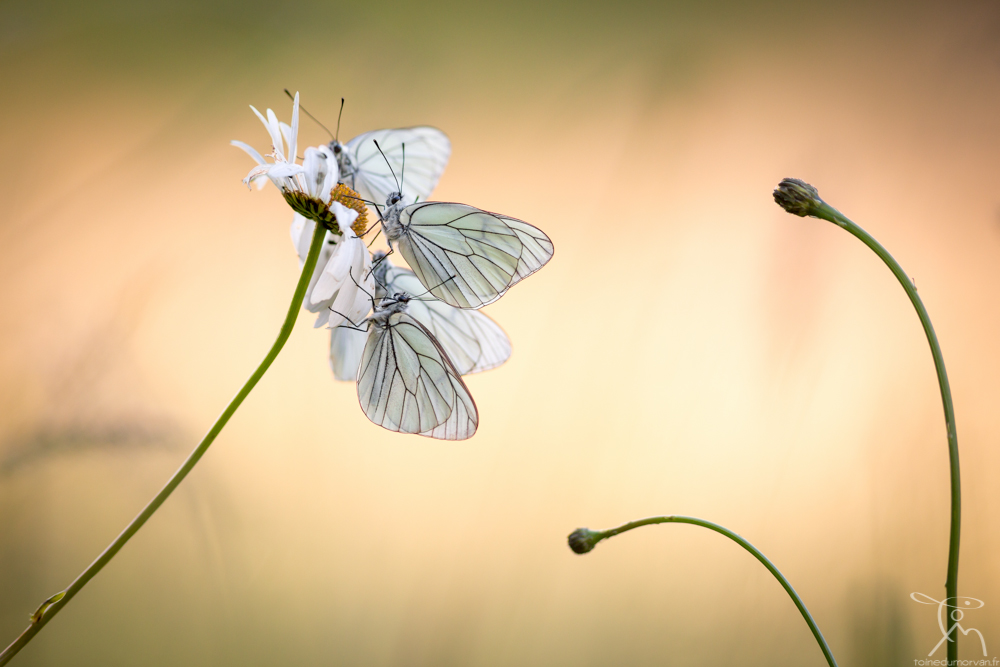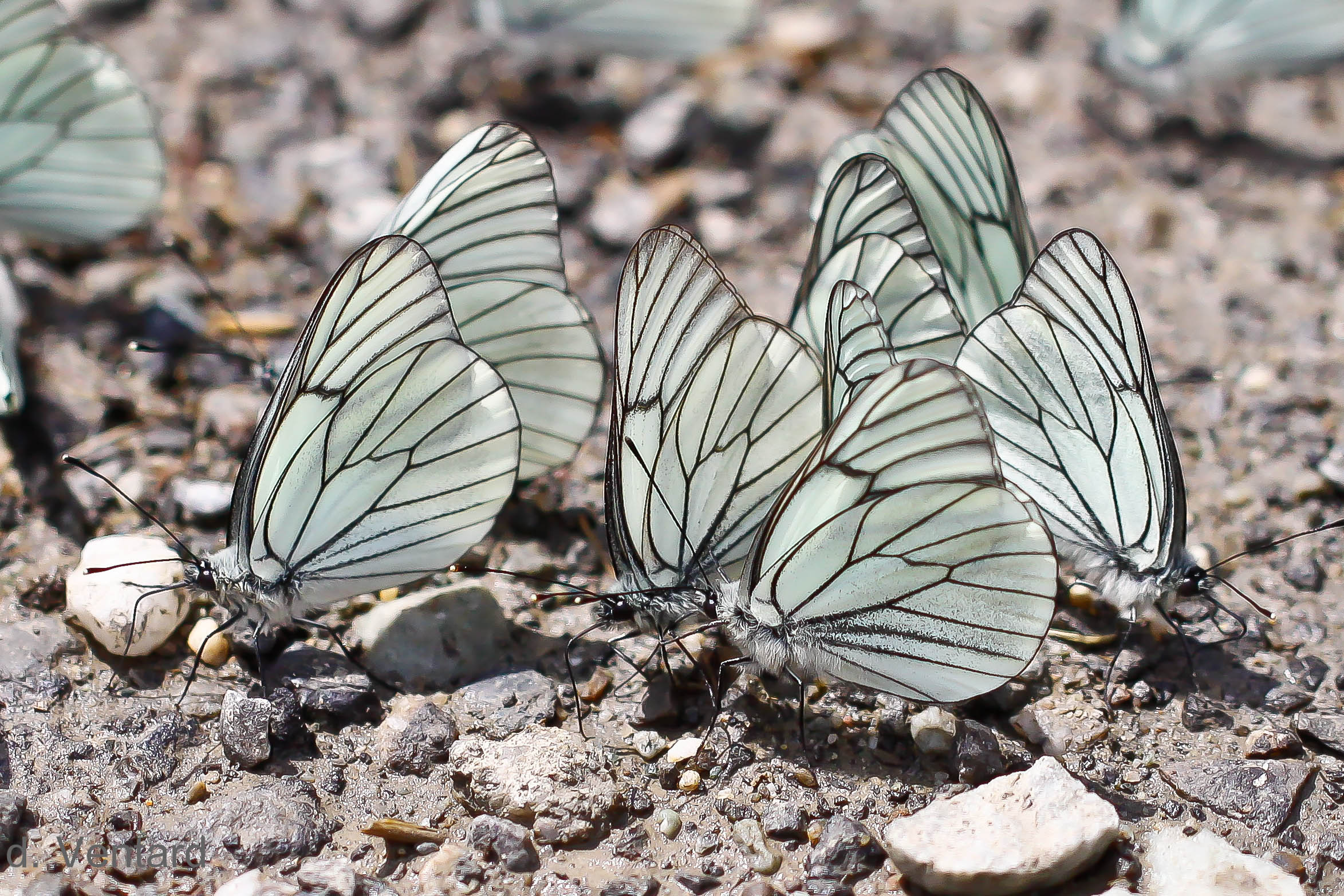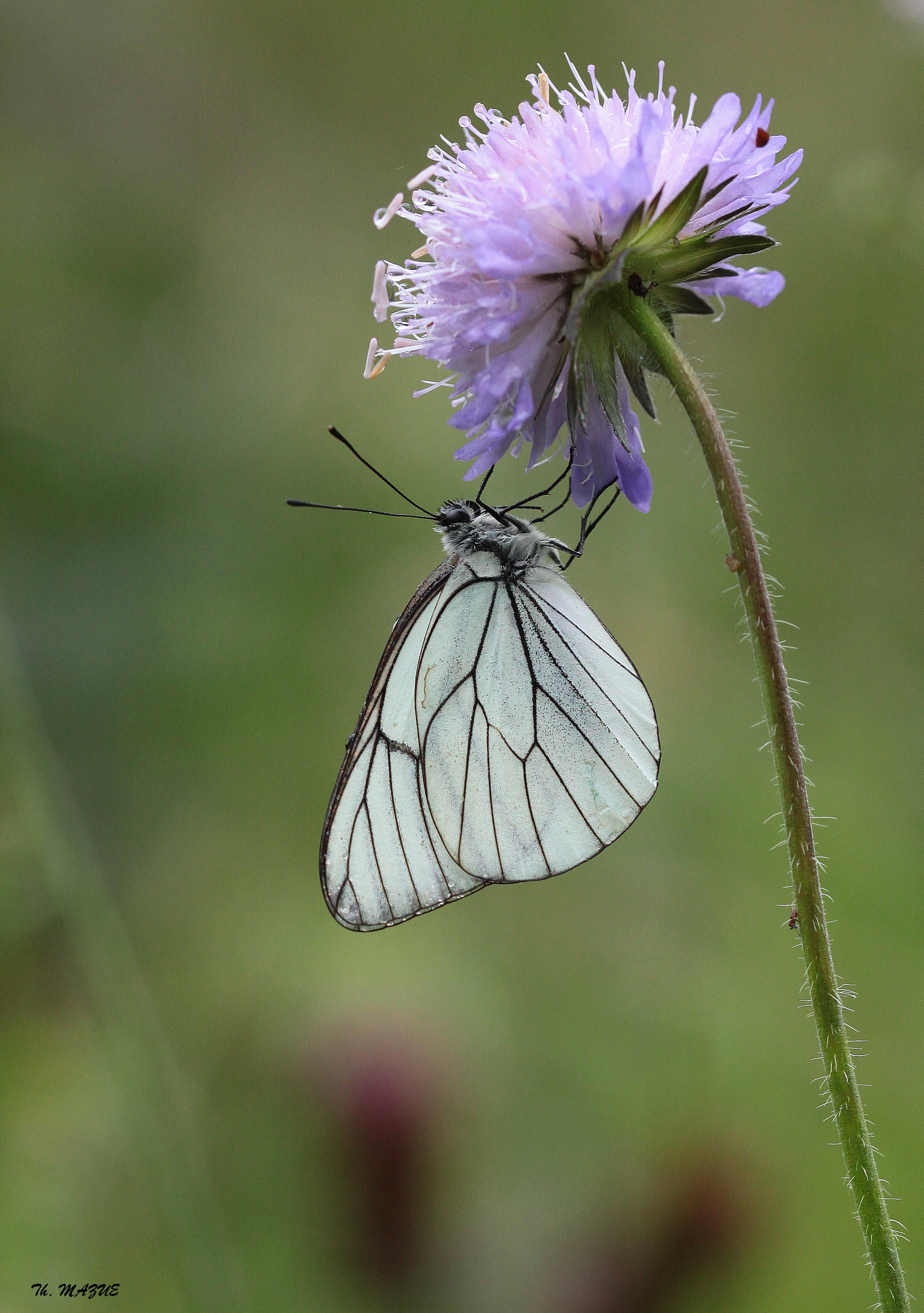 Le Gazé est relativement grand (aile antérieure dépassant souvent 30 mm) et la blancheur de ses ailes, parcourues de nervures brun foncé à noir, permet de le distinguer facilement de la Piéride du Chou. Son thorax est couvert d’écailles piliformes blanches. La femelle est plus massive, avec une couverture écailleuse plus ténue, et des ailes au contour plus arrondi dont les antérieures sont hyalines, surtout après l’accouplement. En montagne, son vol et sa couleur le rendent proche de l’Apollon (Parnassius apollo). Lorsqu’il est observé de près ou posé, l’absence de taches permet une identification immédiate.
