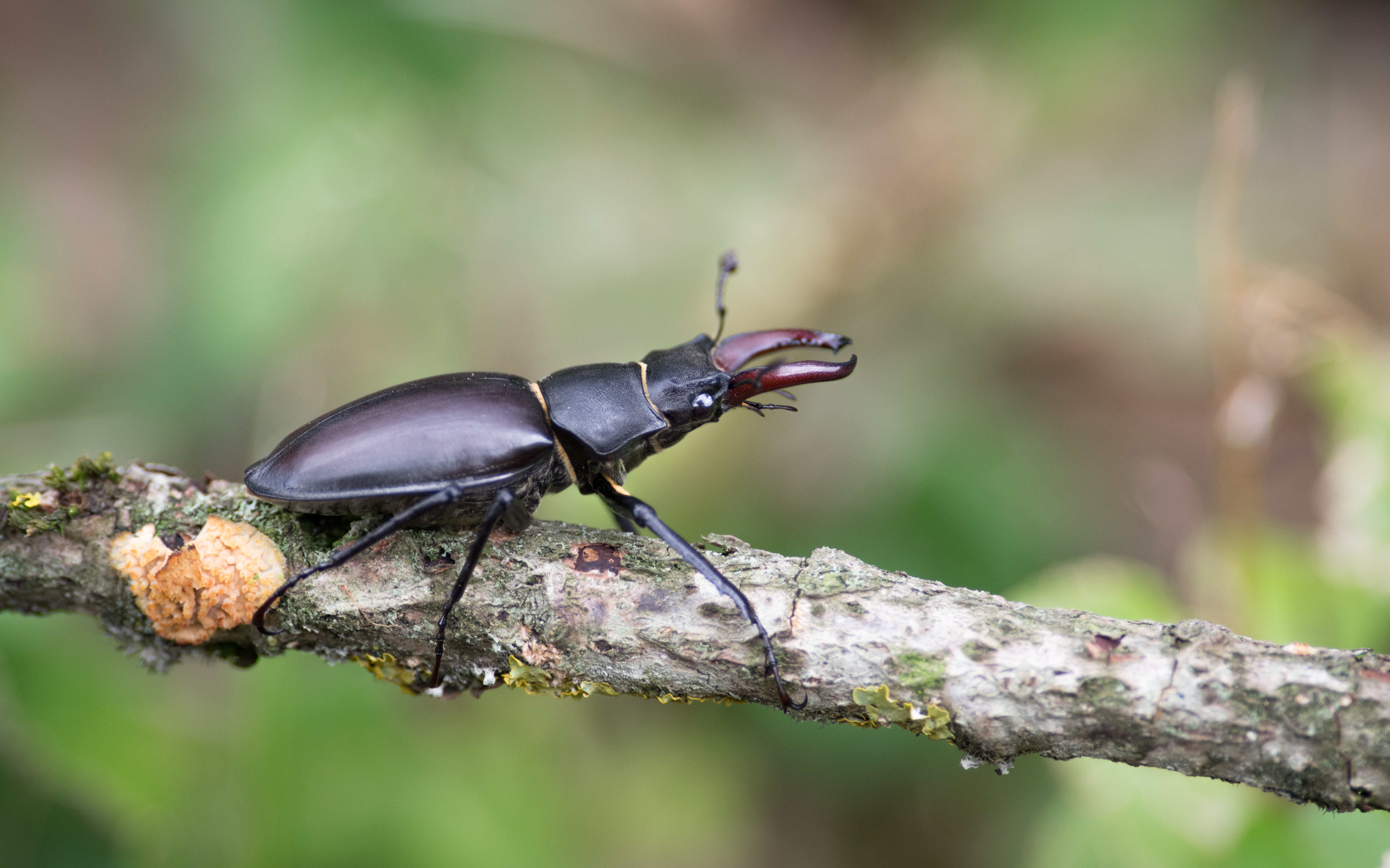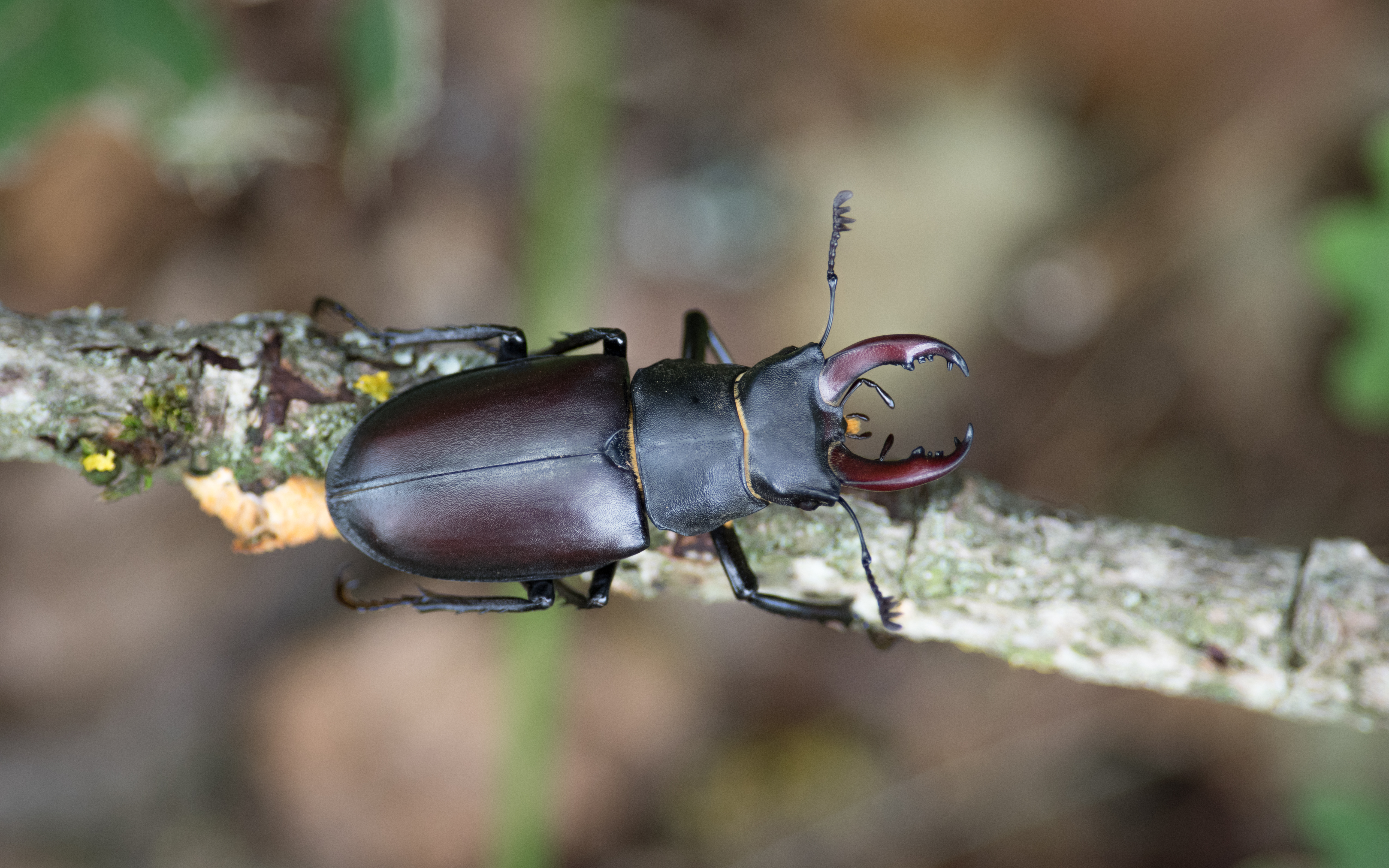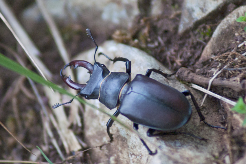 Ce grand Coléoptère fréquente préférentiellement les vieux arbres des lisières et trouées forestières, les chemins forestiers, les parcs et jardins en zones urbaines. Très discret, le Lucane est difficile à repérer : les larves se développent d’abord dans le creux des arbres ou les souches en décomposition puis sous la terre, les adultes ont une activité crépusculaire et nocturne généralement de mai à juillet. A ce moment-là, les rencontres avec cet insecte à la morphologie caractéristique ne sont pourtant pas rares, y compris en ville. On remarquera les adultes avec leur démarche lente, la posture d’intimidation des mâles ou, avec un peu de chance, leur impressionnant vol lourd, bruyant et maladroit en position quasi verticale.