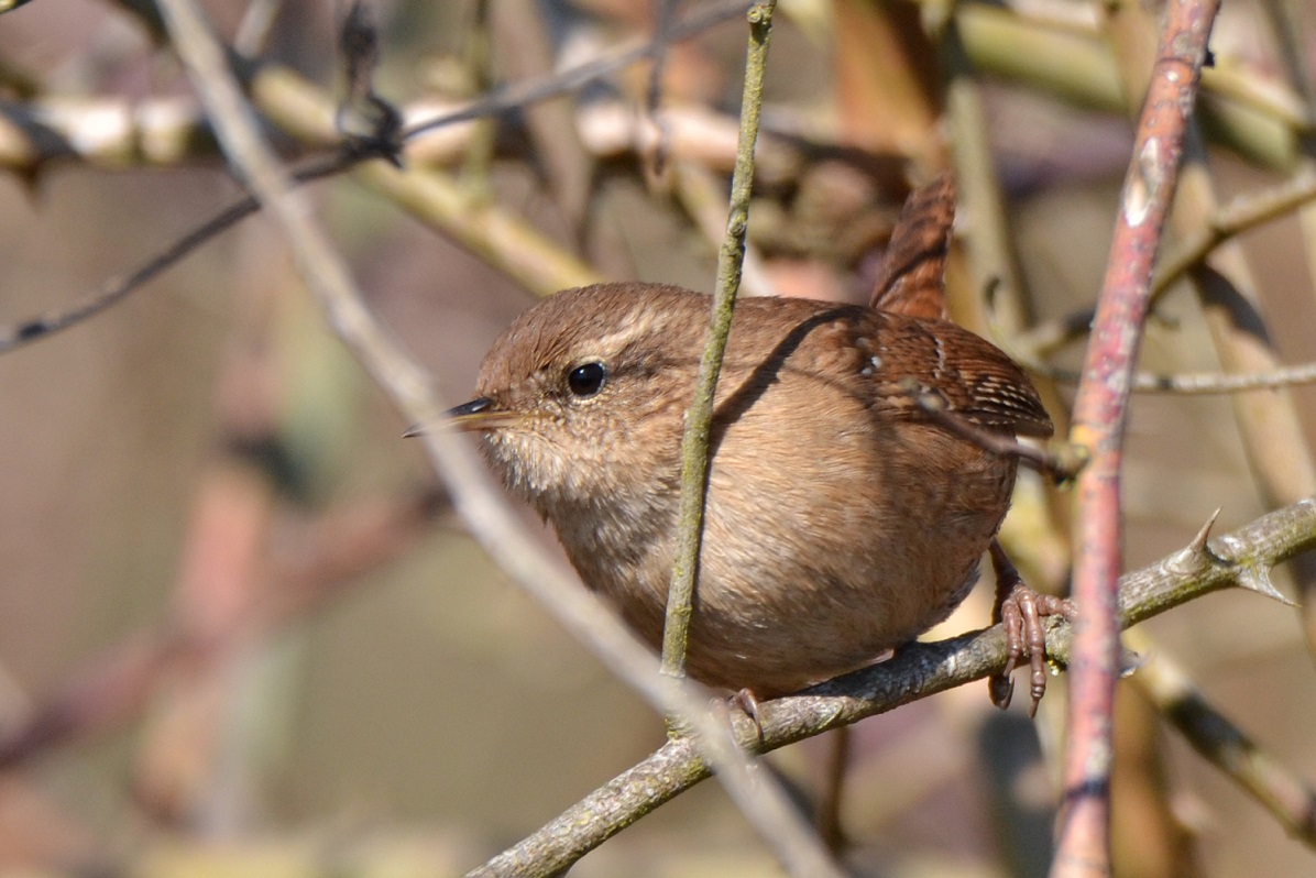 Très petit et rondelet, le Troglodyte mignon est aisément reconnaissable à son pelage brun roux, plus pâle dessous, et sa queue courte et relevée. Sa tête est ornée d’un sourcil pâle diffus. Il est très souvent entendu et repéré grâce à son chant, une série de trilles aigus et de notes fortes, très puissant pour un si petit oiseau?!